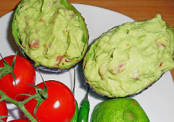 Skal du ikke servere guacamolen med en gang, kan du skvise limejuice over den, så holder den fine grønnfargen seg.