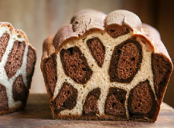 Es ist natürlich etwas aufwändig, aber nicht extrem. Zuckerkulö in den Teig zu kenten, war allerdinge ein ziemlicher Saukram. Die Flecken wurden nicht ganz so eckig, aber als Leopard geht’s durch 🙂 Ansosnten schmeckt das Brot wie ein Weißbrot, mit leichter Bitterkeit vom Kakao.